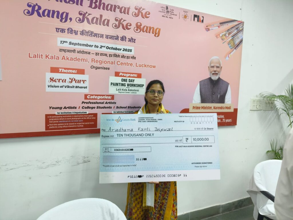 लखनऊ: “विकसित भारत के रंग कला के संग ” राष्ट्रीय स्तरीय चित्रकला प्रतियोगिता में केंद्रीय विद्यालय की शिक्षिका व छात्रा हुई पुरस्कृत