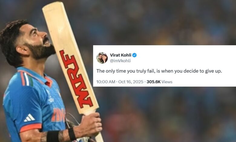 मुंबई। वास्तव में आप तभी फेल होते हैं, जब आप हार मानने का फैसला कर लेते हैं। यह शब्द हैं चेजिंग मास्टर किंग कोहली के, जो उन्होंने एक्स पर लिखे हैं। विराट कोहली की यह पोस्ट तेजी से वायरल हो रही है। पोस्ट पर कोहली के फैन्स और क्रिकेट के दीवाने तरह-तरह के मतलब निकाल रहे हैं कि आखिर ऑस्ट्रेलिया दौरे से ठीक पहले विराट ने एक्स पर ऐसा क्यों लिखा है।