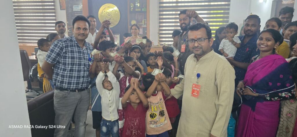 दिवाली पर अपने बच्चों के लिए पटाखों एवं मिठाइयों के लिए नकद आर्थिक सहयोग पाकर उनके माता- पिता में के चेहरों पर मुस्कान आ गई।