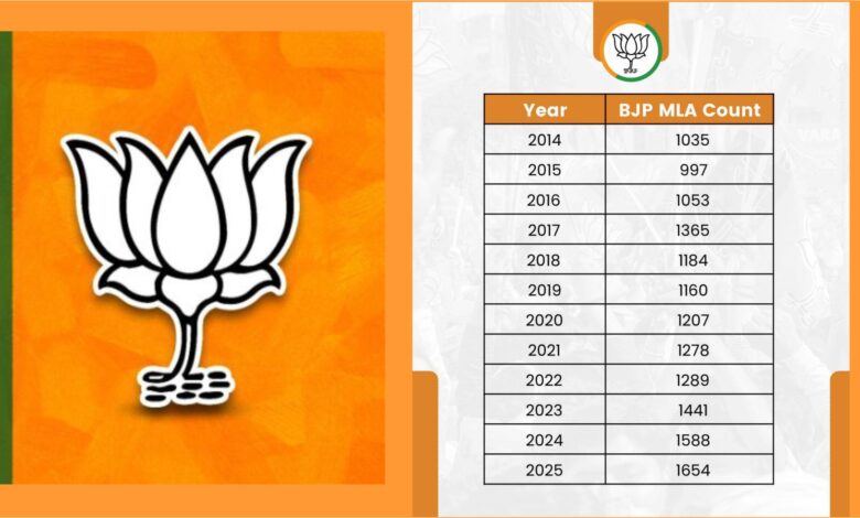 बिहार विधानसभा के चुनाव में राष्ट्रीय जनतांत्रिक गठबंधन की प्रचंड जीत के बाद देशभर में भारतीय जनता पार्टी के पास सर्वाधिक 1654 विधायक हो गए हैं।