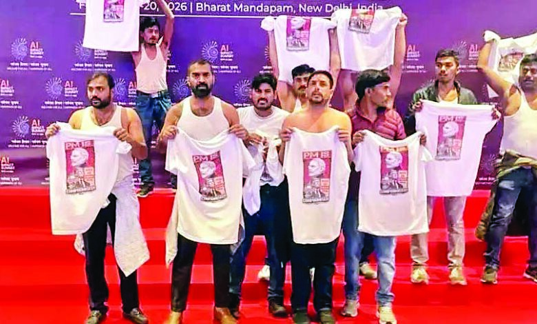 AI सम्मिट में यूथ कांग्रेस का टी-शर्ट उतारकर प्रदर्शन